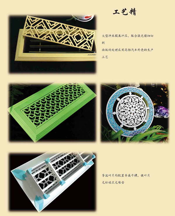 藝術(shù)風(fēng)口藝術(shù)百葉風(fēng)口藝術(shù)裝飾的詳細(xì)頁(yè)面。訂貨號(hào):藝術(shù)風(fēng)口,貨號(hào):土豪金,種類:百葉式風(fēng)口,用途:出風(fēng)口,材質(zhì):環(huán)保鍍鋅板,形式:單層,品牌:順智,型號(hào):仿古銅色,是否跨境貨源:否,規(guī)格:可定制。我公司專業(yè)設(shè)計(jì)制造各類藝術(shù)風(fēng)口,高端酒店及別墅豪華藝術(shù)風(fēng)口,顏色款式客根據(jù)客戶要求定制,可大規(guī)模批量生產(chǎn)可承擔(dān)現(xiàn)場(chǎng)安裝。