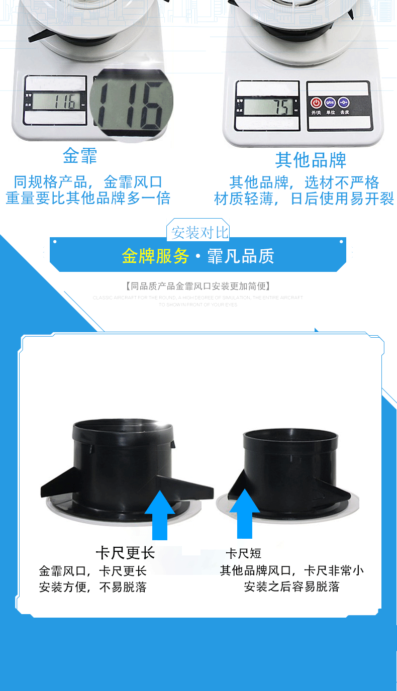 制作:風(fēng)口做成加厚型(外框1.0mm,葉片0.8mm);一般制作都是加厚型的,要薄型的可以跟客服聯(lián)系;也可烤兩遍漆,顏色可按客戶要求進(jìn)行烤制(價格另計(jì),量大從優(yōu))